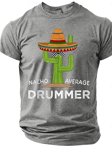 Camiseta de hombre con estampado divertido de nachos, baterista promedio, cactus, sombrero, comida mexicana, humor, regalo para músicos, batería, manga corta, ropa de diseñador, tallas S, M, L, XL,