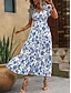 Mujer Vestido maxi Vestido de cambio Vacaciones Casual Noche Holgado Floral Graphic Manga Larga Escote en Pico Azul Piscina Amarillo Naranja Azul-Blanco Verano Primavera