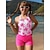 Niños Chica Traje de baño Exterior Graphic Activo Adorable Frunce Trajes de baño 7-13 años Verano Rosa
