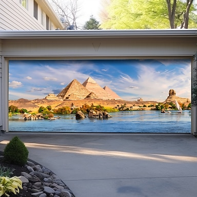 antiguas pirámides egipcias esfinge río Nilo panorámico puerta de garaje pancarta cartelera mural exterior a gran escala cubierta resistente a la intemperie decoración exterior de la casa pancarta