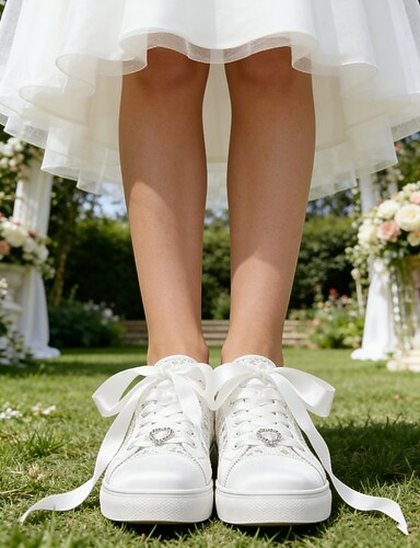 Zapatillas de mujer con cordones y ribete de satén: ideales para una boda informal y elegante