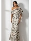 Funda Columna Hasta el Suelo Bordado con cuentas Vestido formal Vestido de madre de la novia Vestidos de noche Vestimenta formal Elegante Estilo de Celebridad Floral Manga Corta Escote Cuadrado