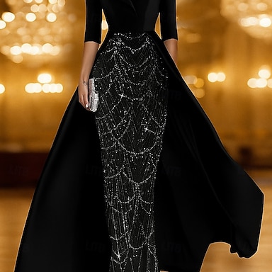 Vestido de Gala Cola de Corte Bordado con cuentas Vestido formal Vestido de madre de la novia Vestidos de noche Vestido de baile con sobrefalda Vestimenta formal Elegante Reluciente Manga Larga