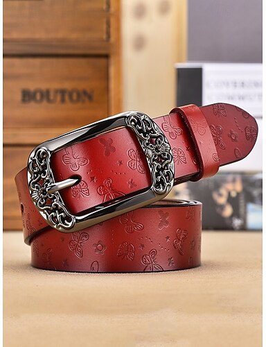 Cinturón de piel para mujer con diseño floral en relieve, disponible en varios colores, ideal para ropa casual bohemia.