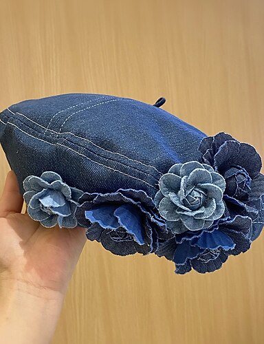 Boina con decoración de flores vintage para mujer, boinas lavadas de mezclilla azul, sombrero octogonal ligero, sombreros de pintor clásicos