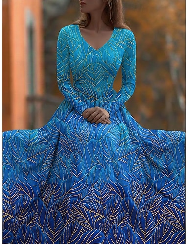 Mujer Vestido maxi Vestido plisado Fiesta Casual Boho Diario Cita Noche Ajuste regular Floral Manga Larga Escote en Pico Azul Piscina Verde Trébol Verano Primavera