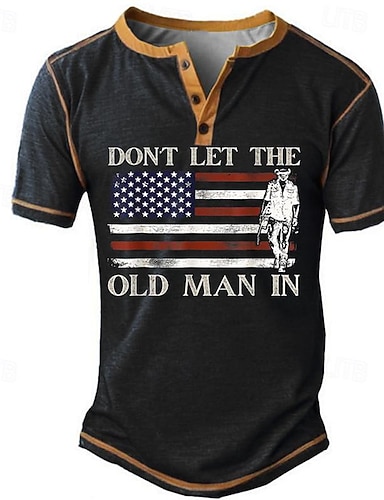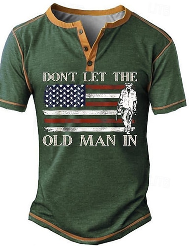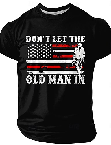 Festival de Música Hombre Graphic Bandera estadounidense Old Man Camiseta Manga Corta Camiseta Impresión 3D Cuello Barco Camisa Retro Antiguo Casual Estilo callejero Deporte Festivos Noche Negro