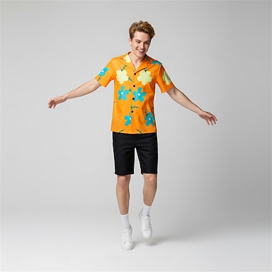 Aventurero del océano Capitán Pirata del Sombrero de Paja Traje de cosplay Camisas hawaianas Camisa hawaiana Animé Cosplay for Hombre Adulto Víspera de Todos los Santos Carnaval Playa Fiesta