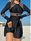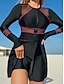 Mujer Bañadores Una pieza Traje de baño Retazos Cremallera Malla Vacaciones Ropa de playa Bloque de color Escote Redondo Manga Larga Trajes de baño