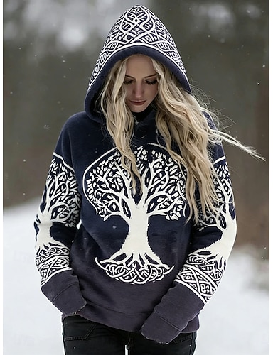 Mujer Sudadera con capucha Pullover Retazos Estampado Bolsillo delantero Graphic Geométrico Vintage Casual Manga Larga Con Capucha Tops regulares Casual Calle Uso Diario Azul Piscina Azul marinero
