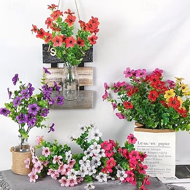 10 paquetes de flores artificiales, plantas falsas - flores falsas, plantas artificiales para exterior, flores, hojas de eucalipto, bricolaje, boda, jardín, porche, ventana, jardinera, macetas,