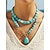 Collar bohemio de turquesa en capas para mujer, gargantilla de cadena de aleación de oro y cuentas de piedra artificial con colgante de lágrima, ideal para vacaciones de playa de verano bohemias y joyería informal diaria.