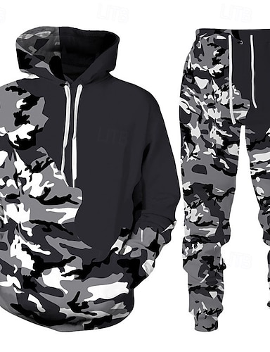 Hombre Tracksuit Conjunto de atuendo Conjunto de sudaderas con capucha Sudadera Exterior Diario Deportes Bolsillo Correa camuflaje Negro Naranja Gris Ligero Impresión gráfica Poliéster Ropa de Deporte