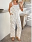 Overol normal de lino parecido a algodón para mujer activo gráfico sin mangas pierna ancha cuello redondo con cordón bolsillo diario vacaciones ajuste holgado negro blanco verde verano