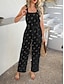 Overol para mujeres 100% algodón ligero con gráfico sin mangas de pierna ancha escote redondo con bolsillo para vacaciones uso diario corte holgado rojo azul púrpura verano