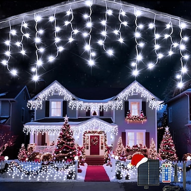 Luces de carámbano solares impermeables 33 pies 400 LEDs 48 gotas 8 funciones temporizador control remoto cable transparente luces de cadena conectables luces decorativas para el balcón árbol porche