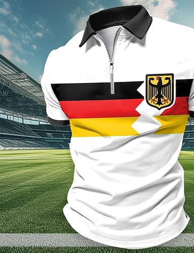Hombre POLO Camiseta de golf Casual Diario Cuello Vuelto Cremallera de un cuarto Manga Corta Deportes Moda Patrones de Rombo Cremallera Cremallera de un cuarto Primavera verano Ajuste regular Azul