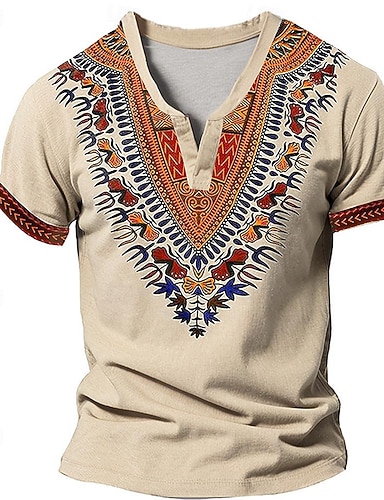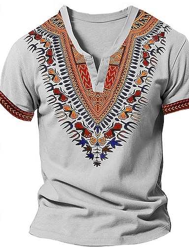 Hombre Patrón africano Camiseta Henley Shirt Manga Corta Impresión 3D Design Étnico Casual Diario Verano Caqui Gris Escote en Pico Henley Camiseta Henley