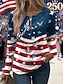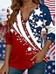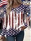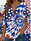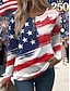 Día de la Independencia Aniversario Americano Patrón Camiseta para Mujer Gráfica Bandera Vintage Moda Casual de Manga Larga Cuello Redondo Tops Regulares Impresión Diario Con Cremallera Azul Blanco