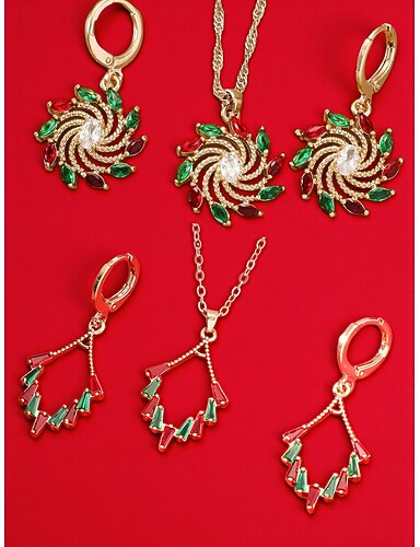 Conjunto de joyas de cristal verde para mujer: elegante collar y pendientes chapados en oro con diseño de remolino, accesorios de fiesta brillantes para celebraciones navideñas y eventos festivos.