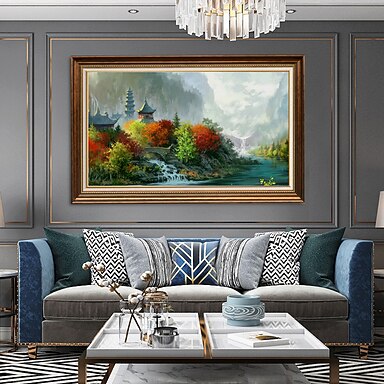 Pintura al óleo hecha a mano lienzo decoración de arte de la pared paisaje de jardín chino clásico para decoración del hogar pintura enrollada sin marco sin estirar