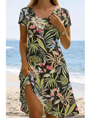 Mujer Mini vestido Vestido de verano Vestido estilo camiseta Vestido de una línea Vacaciones Casual Exterior Playa Noche Ajuste regular Floral Graphic Tropical Manga Corta Cuello redondo blanco azul