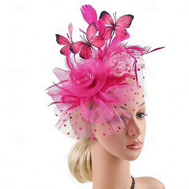 Fascinators Tul Plumas Boda Cumpleaños Vintage Estilo lindo Retro Con Pluma Mariposa Celada Sombreros