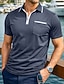 Hombre Polo de algodón Camiseta de golf Trabajo Negocio Cuello polo acanalado Clásico Manga Corta Básico Moderno Color sólido Retazos Bolsillo Primavera verano Ajuste regular Gris oscuro Negro