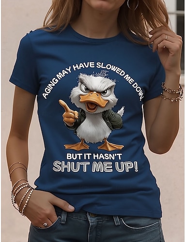 Mujer Camiseta Retazos Estampado Gato Letra Argot divertido Básico Manga Corta Escote Redondo Tops regulares Diario Azul Piscina Azul Marino Verano Primavera Otoño Invierno I'm Fine Everything Is Fine