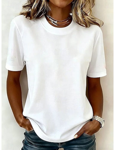 Mujer Camiseta Remera de algodón Camiseta superior Color sólido Moda Elegante Básico Manga Corta Cuello Barco Tops regulares Diario Noche Fin de semana Azul Piscina Negro Blanco Amarillo Verde Claro
