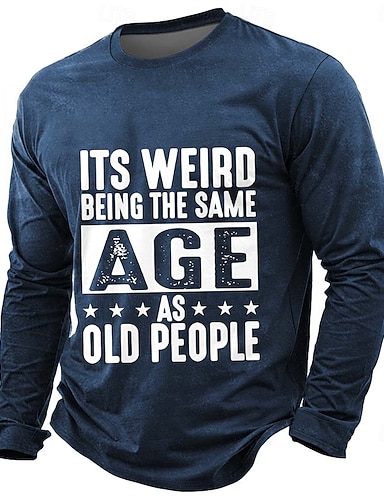 Es raro tener la misma edad que las personas mayores. Camiseta gráfica de manga larga para hombre con frase sarcástica, cuello redondo azul marino, ropa informal, tallas S, M, L, XL, XXL, XXXL.