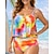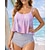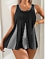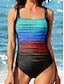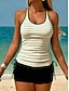 Tankini de dos piezas para mujer con aros color bloque atrevido control de abdomen cintura alta sin espalda vacaciones ropa de playa floral a rayas sin mangas