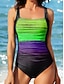 Maillot de baño de una pieza para mujer monokini de color block control de abdomen talle alto espalda descubierta vacaciones gráfico vintage en degradé cuello en U sin mangas