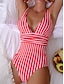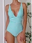 Mujer Bañadores Una pieza Monokini Slips Traje de baño Control de barriga Alta cintura Espalda al Aire Vacaciones Ropa de playa Graphic A Rayas Escote en U Sin Mangas Trajes de baño