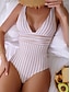 Mujer Bañadores Una pieza Monokini Traje de baño Control de barriga Alta cintura Delgado Espalda al Aire Vacaciones Ropa de playa A Rayas Escote en Pico Sin Mangas Trajes de baño