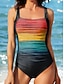 Tankini de mujer de 2 piezas pierna de chico halter control de abdomen cintura alta sin espalda vacaciones moda playera gráfico ombre a rayas cuello halter sin mangas