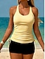 Tankini de dos piezas para mujer con braguitas color bloque control de abdomen cintura alta esbelto sin espalda para vacaciones playa cuello en U sin mangas