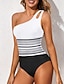 Bañador de una pieza para mujer monokini de un hombro control de abdomen alta cintura esbelto sin espalda ropa de playa para vacaciones cuello asimétrico a rayas sin mangas