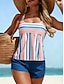 Mujer Bañadores Tankini 2 piezas Bermudas Traje de baño Control de barriga Alta cintura Delgado Espalda al Aire Vacaciones Ropa de playa A Rayas Escote en U Sin Mangas Trajes de baño
