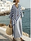 Corte A Hasta el Tobillo Vestido de Fiesta Vestido Cóctel Vestido Invitada Boda Vestido de Madrina Manga 3/4 Escote en Pico Elegante Formal Rayado con Cinta / Lazo Impresión