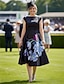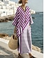 Corte A Vestido Midi Vestido de Fiesta Vestido Cóctel Vestido Invitada Boda Vestido de Madrina Manga Corta Escote Barco Elegante Vintage Rayado con Flor