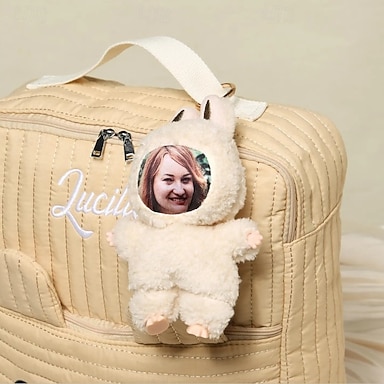 Llavero de peluche personalizado con cara divertida, llavero de conejito de Pascua con foto personalizada, regalo con orejas de conejo, dije para bolso suave, accesorio para mochila, regalo para niños, novia, damas de honor.