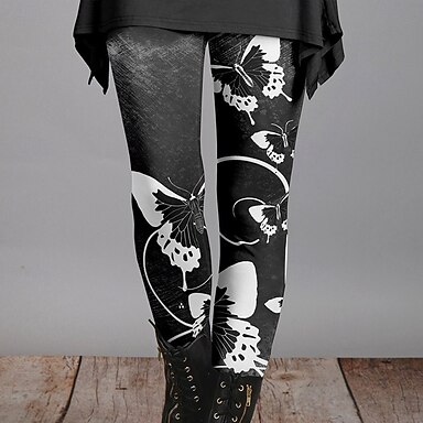 Mujer Polainas Moda Ropa de calle Hasta el Tobillo Alta cintura Floral Estampado Mantiene abrigado Suave Transpirable Microelástico Diario Exterior Negro Otoño Invierno Ajuste regular