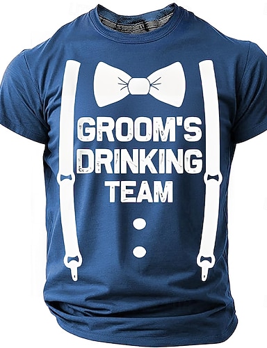 Camiseta con texto de equipo de bebida para novios, pajarita, tirantes, esmoquin, gráfico, humorístico, sarcástico, para despedidas de soltero, boda, padrinos de boda, corte regular, ropa informal