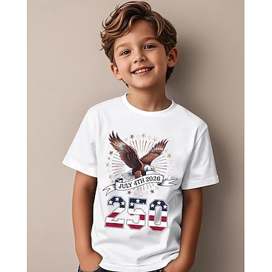 100% Algodón Niños Chico Negro Blanco Águila Bandera de USA 250 aniversario Camiseta Blusa Cuello Barco Manga Corta Exterior Uso Diario Moda Ropa de calle Design Estampado Verano