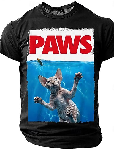 Camiseta con estampado de patas de gato, parodia de película divertida, póster de mandíbulas de gato esfinge, regalo para amantes de los gatos, humor de película de terror, manga corta, ropa informal,