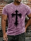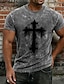 Camiseta vintage azul para hombre con estampado gótico de cruz, efecto desgastado, salpicaduras de tinta, lavado mineral, estilo grunge urbano, mezcla de algodón y poliéster, tallas S-4XL
