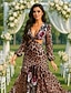 Corte A Hasta el Suelo Trajes de gala Elegante Vintage Fiesta Manga Larga Hombros Caídos Fiesta de Noche Fiesta de jardin Nailon con Estampado flor