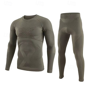 Hombre Capa base superior e inferior Conjunto de ropa interior térmica Color sólido Trajes de Yoga Otoño invierno Verde Ejército Esquí Senderismo Rutina de ejercicio Resistente al Viento Templado