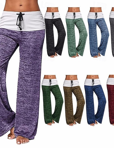 Mujer Pantalones de Deporte Perneras anchas Chinos Moda Ropa de calle Casual Longitud total Alta cintura Raya Cintura elástica Confortable Suave Cómodo Elástico Interior Yoga Azul Piscina Negro Rojo
